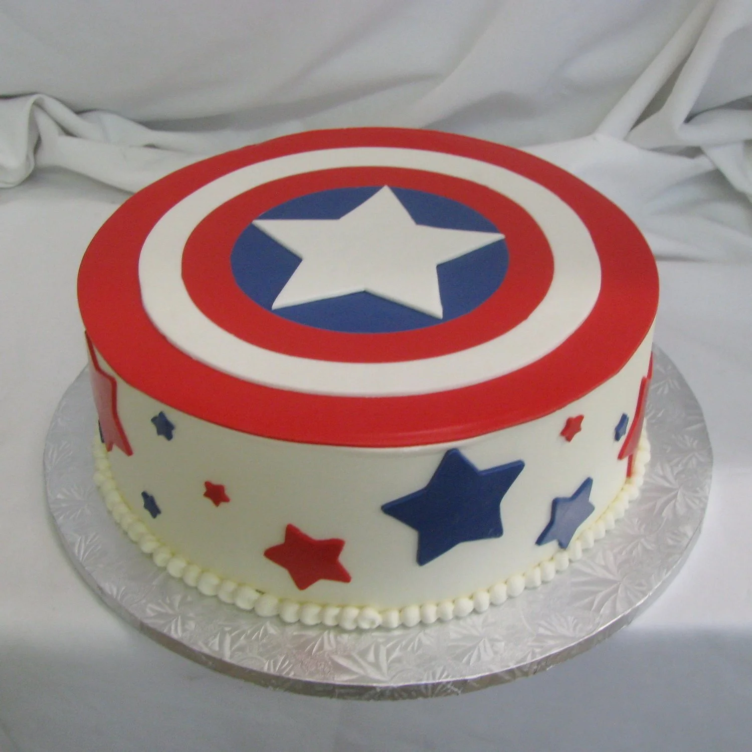 Unleash your inner hero with our 9-inch round Captain America themed cake! Customize your inscription, select the cake flavor that satisfies your taste buds, and breeze through our checkout process. With our expert touch, we'll create a Captain America masterpiece that will make your celebration extraordinary. Remember to place your order at least one week ahead for a heroic celebration!