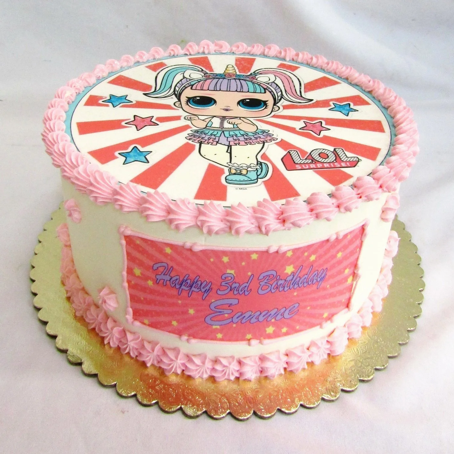 Unwrap the excitement with our L.O.L. Surprise-themed cake! Customize your inscription, choose your favorite cake flavor, select your primary color, and we'll expertly harmonize the accompanying colors for an unforgettable treat. Ordering Process: Easily complete your order through our checkout process, ensuring meticulous attention to detail. Order Lead Time: Place your order at least one week in advance for seamless perfection.